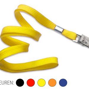 Deze Keycord met een clip is te verkrijgen in de kleuren: zwart, rood, geel, oranje en navy blue. De keycord is gemaakt van geweven textiel en heeft een breedte van 1 cm. Voor informatie kunt u gebruik maken van ons contact formulier.