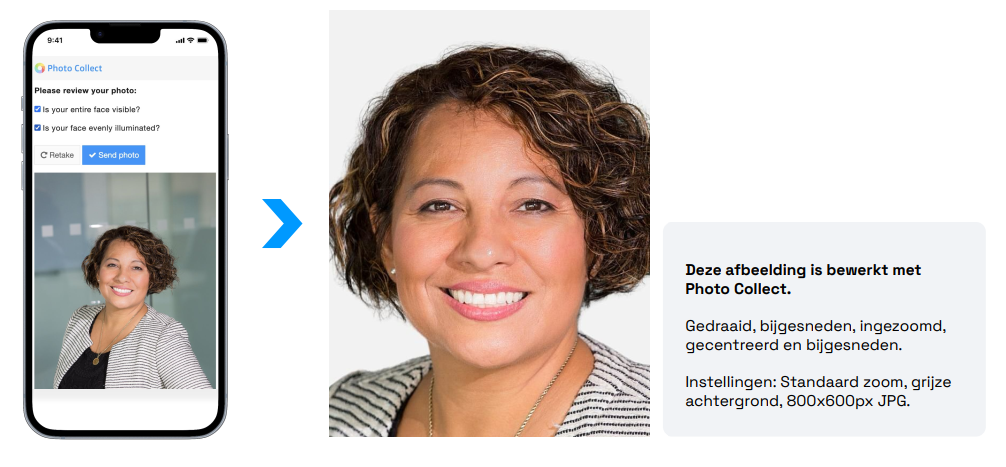 De foto moet duidelijk de gelaatstrekken van de persoon van kin tot haarlijn hebben, alsmede de linker- en rechterkant van het gezicht. Het gezicht moet 70 tot 80 procent van de foto innemen. Bij volumineus haar moet ervoor worden gezorgd dat het hoofd (inclusief haar) volledig op de foto komt,...